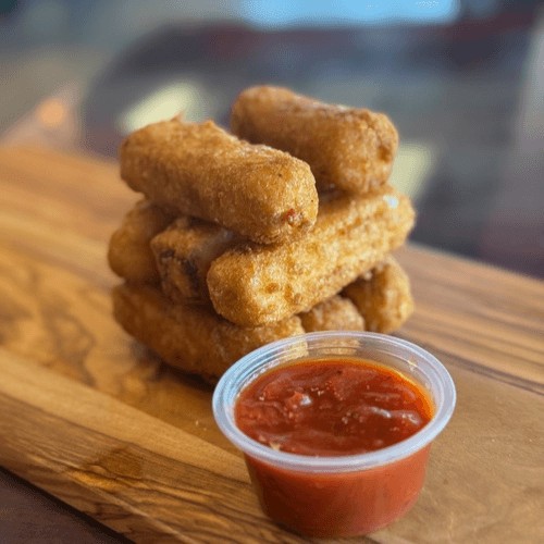 Crisp breaded mozzarella cheese sticks served with a marinara dipping sauce