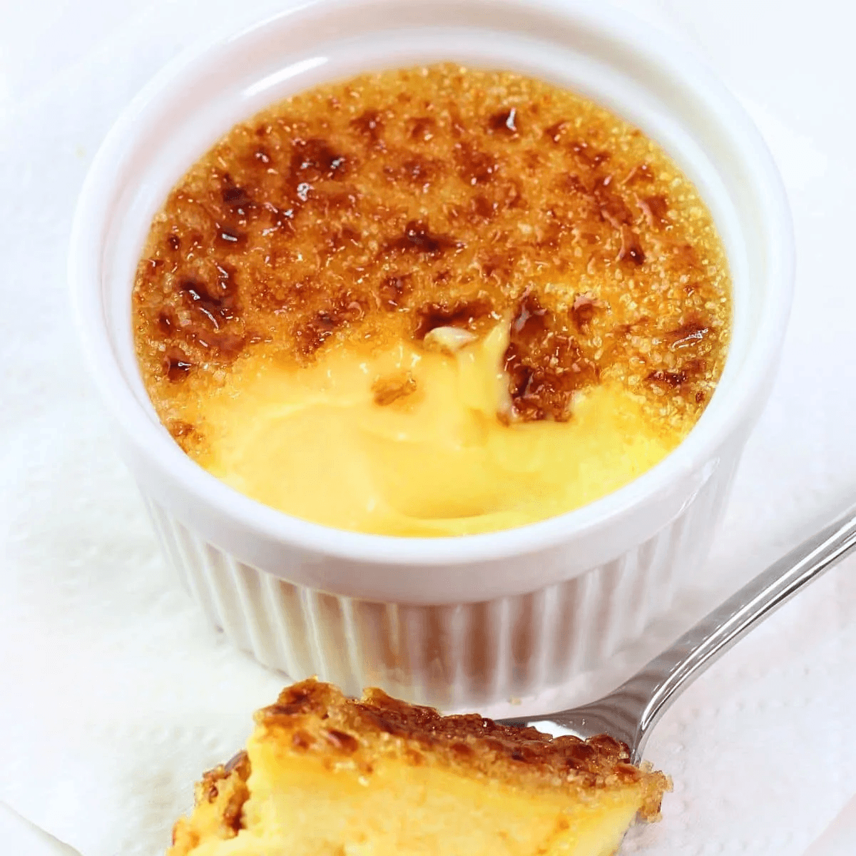 A timeless French dessert made with silky smooth vanilla custard, finished with a perfectly caramelized sugar crust. Crack through the crisp top to reveal a rich, creamy center in every spoonful.