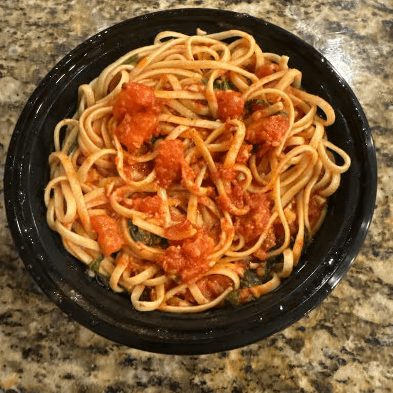 Sauteed Roma tomatoes, fresh garlic, olive oil and fresh basil in a light tomato sauce tossed with pasta